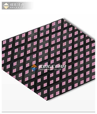精城新一代滾筒陶瓷橡膠(NMC-B)是采用先進(jìn)的熱硫化工藝將表面帶有顆粒的耐磨陶瓷按照一定的布局硫化在特種橡膠內(nèi),然后粘貼在滾筒表面以代替?zhèn)鹘y(tǒng)的橡膠,起到增強(qiáng)皮帶與滾筒摩擦系數(shù)、提高滾筒使用壽命的作用。同時(shí),每列陶瓷間的溝槽,便于排水排泥,在惡劣環(huán)境下保證正常運(yùn)行。一般可延長(zhǎng)滾筒使用壽命10倍以上。
